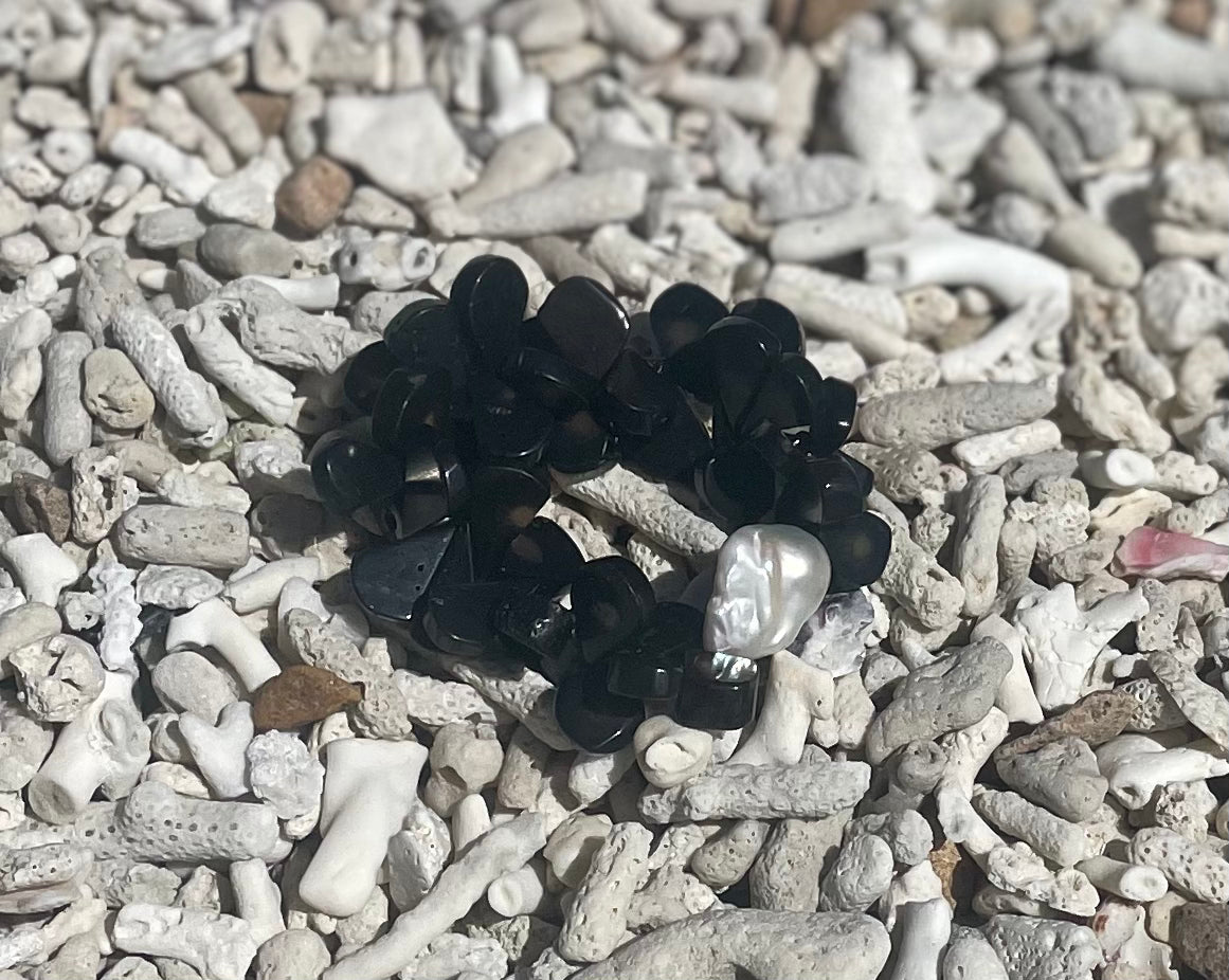 Black coral and baroque pearl bracelet